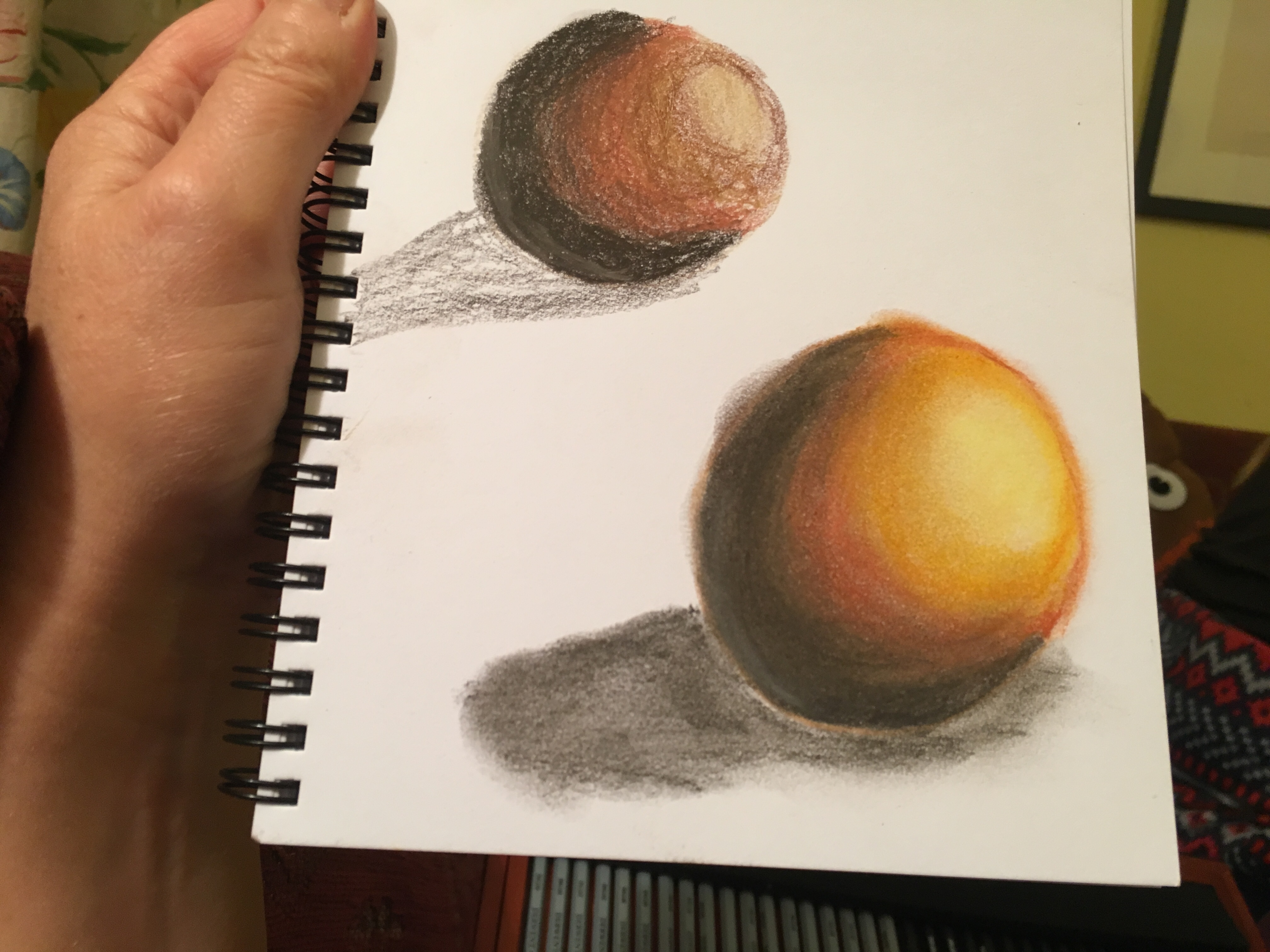 I spent part of October staying with my Mum in the village where I grew up, enjoying old familiar walks. As I walked I thought of an artist I once knew who painted that particular landscape in a way that spoke to my heart, capturing the feel of the place as I knew it. I suddenly felt why his work struck such a chord for me, and there was a huge moment of realisation and learning for me. The whole idea that drawing and painting has far more to do with getting a feeling on to the page than it has with getting a realistic representation of something or somewhere. This may seem obvious to some, but I had always thought that what I was reaching for was something that looked like the original. Now what the heck is the point of that? That is partly what photography is for, isn’t it? Having been a very keen photographer while I could still see to enjoy it, – and, yes, I had an artsy fartsy phase in that too – I knew how one could achieve wonderful images with the camera and some fancy software (or even good old physical filters back in my day). This whole drawing thing is about something altogether different and more personal. From that moment the risk taking grew, the confidence grew, and the images began to improve.
